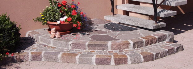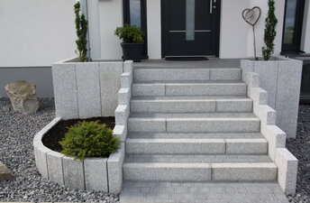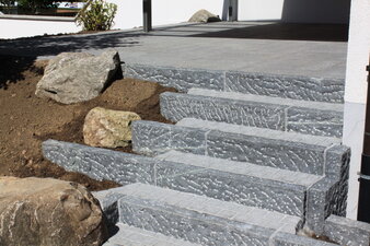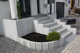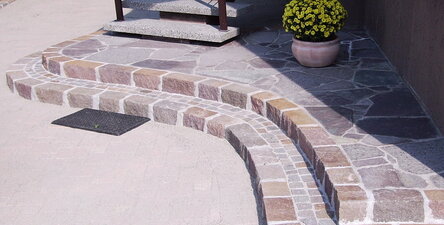 Der erste Eindruck zählt. Wir machen Ihren Eingang zu einem Blickfang. Wir verschönern ihn mit ansprechenden Materialen. Die Treppenstufen werden passend zum Bild des Eingangs angepasst und bieten durch die richtigen Kombinationen aus Materialien und Höhe eine gute Trittfähigkeit.