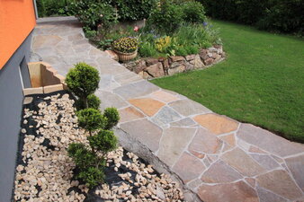Der Weg ist das Ziel. Damit Sie immer gut in Ihren Traumgarten kommen, freuen wir uns Ihre Wege, Flächen und Terrassen in eine Wohlfühloase zu verwandeln. Es können schlichte Pflastersteine oder auch Naturstein in Szene gesetzt werden.